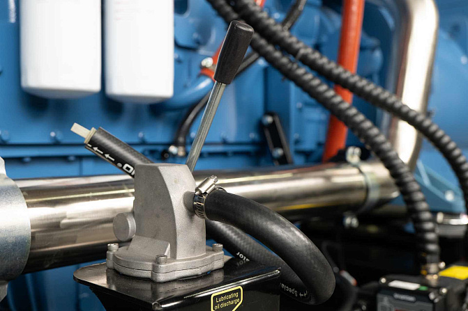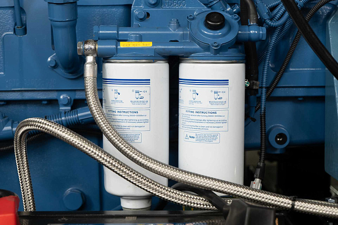 Дизельный генератор 650 кВт с двигателем Yuchai. В комплектацию входит - подогреватель охлаждающей жидкости SmartGen, фильтр-сепаратор топливный, крышка для слива топлива из бака, батарея Varta +подзарядка аккумуляторной батареи SmartGen, промышленный глушитель + компенсатор. Картер двигателя имеет 2 отверстия для масляного насоса и для установки подогревателя масла. Насос для откачки масла из картера двигателя. Медный радиатор FAST рабочая температура до 50С.